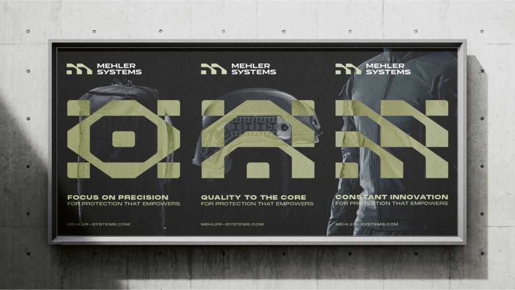The striking brand pattern was created using a flexible grid system derived from an abstract interpretation of the functionality of impact protection equipment. Applied as a texture on protective plates, helmets, and clothing, it gives the products a distinctive appearance while also improving their resilience. Whereas previously the only branding was that of the special forces, it is now obvious their equipment was made by Mehler Systems. Additional brand assets were systematically derived from the brand pattern, including the striking logo, the concise illustrations, a numbering system for quickly distinguishing security categories, and a set of distinctive and useful icons. Employing the codes familiar to the security sector, the visual identity also has a new color palette of tones associated with high performance. The new tagline “When precision matters” complements the new appearance with a message that also focuses on functionality.