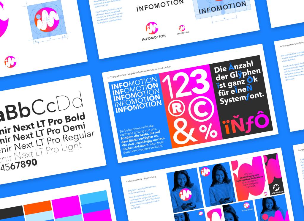 For INFOMOTION, we arouse curiosity about data performance: with a concise, adaptable corporate design that focuses on the company's services and involves employees.