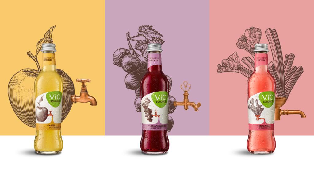 Besides ViO water and lemonades, there are also ViO spritzers. Made of fruit and water only from Germany. A clear statement for regionality that we translate into a modern design.