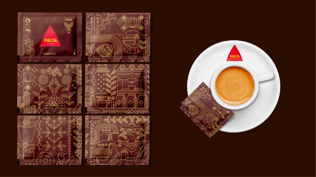 Inspired by elements from popular culture and traditional tapestries from coffee-producing regions, the composition is characterized by symmetry, modularity, and rhythm. These qualities enable the illustrations to adapt seamlessly across various applications – ranging from packaging and sugar packets to paper cups and communication materials. This ensures consistency while maintaining visual interest and reinforcing the brand’s identity across multiple touchpoints. The visuals strengthen Delta Cafés position in the business channel, emphasizing quality, origin, and cultural value.